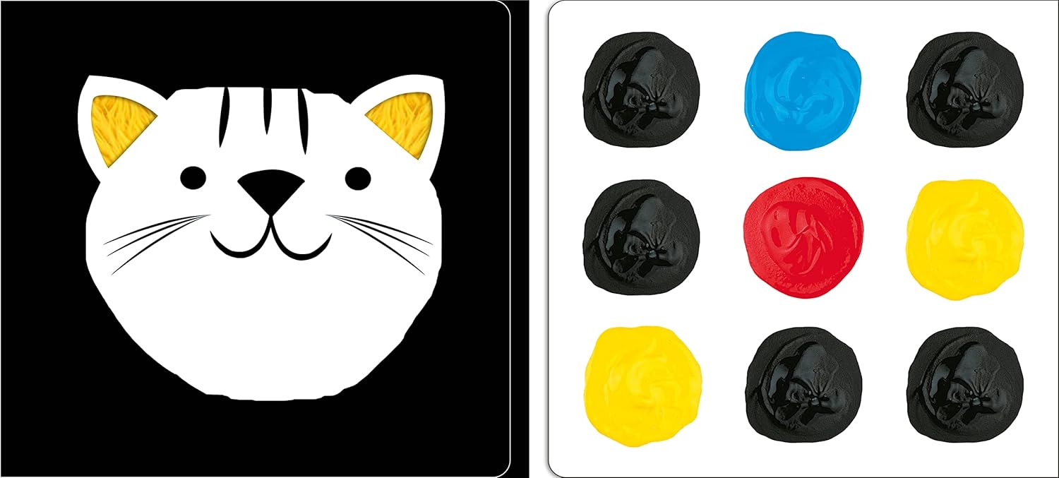 The book features a mix of black-and-white high contrast imagery, appealing photographs of happy babies, and bright colorful handprint artwork which the See Touch Feel series is best known for. The varied art style will engage and entertain babies as they get older.